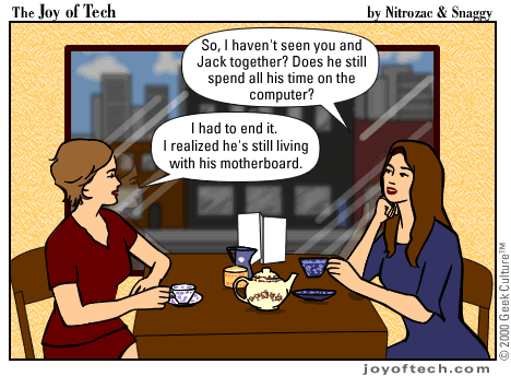 Welcome to the Joy of Tech... illustrated by Nitrozac and written by Nitrozac and Snaggy. It's a little bit simpler in style than our other comic After Y2K, and a little more topical. We hope you enJoy! |