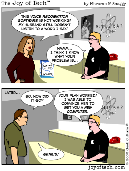- The comic depicts an Apple Genius as having dubious morality, an unlikely occurrence.