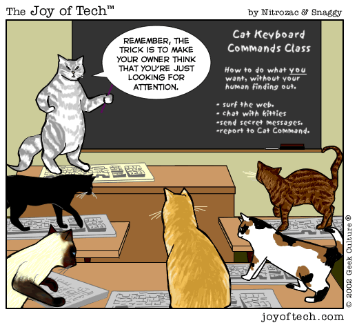 If you're using a Mac and a newer version of Explorer, here's a neat trick courtesy of MacMerc. Drag the above little image to the top tool bar of your browser, it should "stick" afterwards. Now you have a graphical link to the Joy of Tech, one that will update everytime a new comic is uploaded. (You may have to refresh the image manually if it's in your cache.) If you need to delete or move it it, just control button/click and hold, then select delete, or just Command/drag it to the trash.