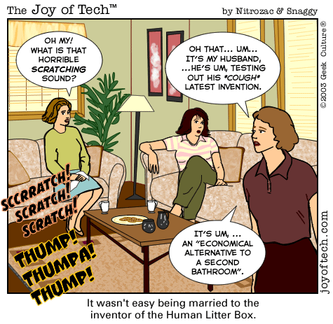 If you're using a Mac and a newer version of Explorer, here's a neat trick courtesy of MacMerc. Drag the above little image to the top tool bar of your browser, it should "stick" afterwards. Now you have a graphical link to the Joy of Tech, one that will update everytime a new comic is uploaded. (You may have to refresh the image manually if it's in your cache.) If you need to delete or move it it, just control button/click and hold, then select delete, or just Command/drag it to the trash.