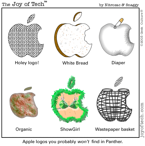 If you're using a Mac and a newer version of Explorer, here's a neat trick courtesy of MacMerc. Drag the above little image to the top tool bar of your browser, it should "stick" afterwards. Now you have a graphical link to the Joy of Tech, one that will update everytime a new comic is uploaded. (You may have to refresh the image manually if it's in your cache.) If you need to delete or move it it, just control button/click and hold, then select delete, or just Command/drag it to the trash.