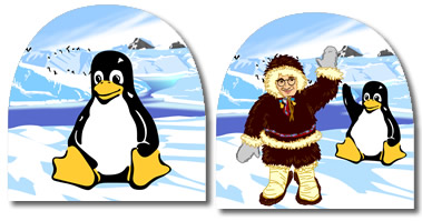 Tux plays in his wonderland, and on the other side his pal Linus visits!