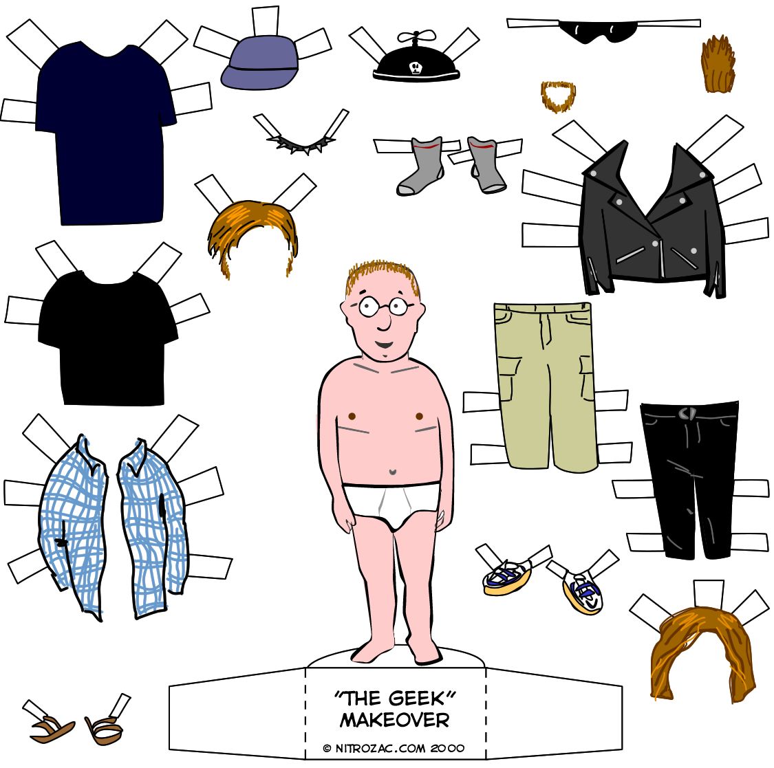 After Y2Kemail Nitrozac! Help Dawn come up with a new look for the Geek! You can print out these jpegs, and try out the different looks. If you want better print outs, here's links to some 150 dpi versions: