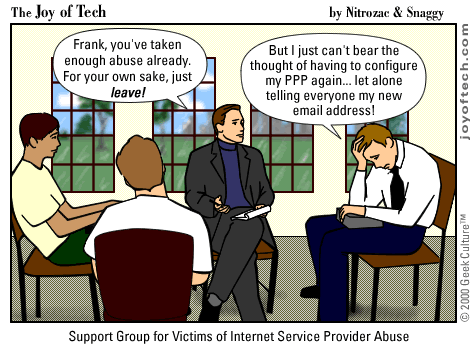 Welcome to the Joy of Tech... illustrated by Nitrozac and written by Nitrozac and Snaggy. It's a little bit simpler in style than our other comic After Y2K, and will be more topical. We hope you'll enjoy it!