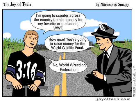 Welcome to the Joy of Tech... illustrated by Nitrozac and written by Nitrozac and Snaggy. It's a little bit simpler in style than our other comic After Y2K, and a little more topical. We hope you enJoy!