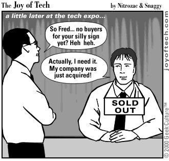 Welcome to the Joy of Tech... our new daily comic, illustrated by Nitrozac and written by Nitrozac and Snaggy. It's a little bit simpler in style than After Y2K, and will be more topical, and we hope you'll enjoy it!