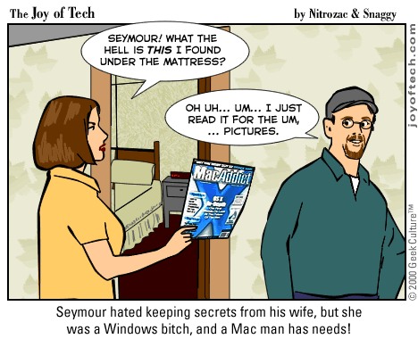 Welcome to the Joy of Tech... illustrated by Nitrozac and written by Nitrozac and Snaggy. It's a little bit simpler in style than our other comic After Y2K, and a little more topical. We hope you enJoy!