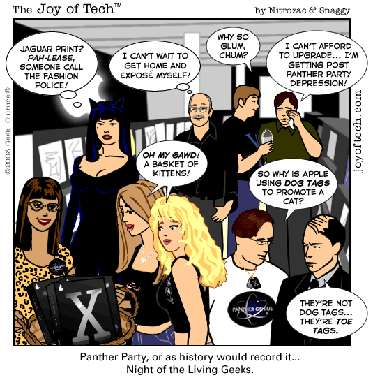 Rednivek finds some Nitrozac Macworld art, ... Mindzeye5 installs Panther! , ... and so does macmcseboy , ... quantumfluff thinks Tools Rock! , ... Tut-an-Geek digs Balancing chemical equations. , ... GeekAvenger's Geek Self Esteem is Fading , ... and Mercury_Blue is the first post in our new Science Section!