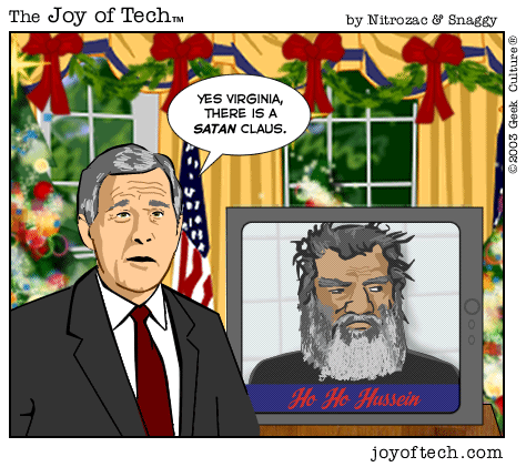 If you're using a Mac and a newer version of Explorer, here's a neat trick courtesy of MacMerc. Drag the above little image to the top tool bar of your browser, it should "stick" afterwards. Now you have a graphical link to the Joy of Tech, one that will update everytime a new comic is uploaded. (You may have to refresh the image manually if it's in your cache.) If you need to delete or move it it, just control button/click and hold, then select delete, or just Command/drag it to the trash.