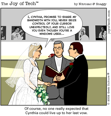 HomeGeek Culture... Geek Love, Geek Files, Mind Numbing Magazine, all kinds of geeky stuff!The Webstore! Get some cool stuff, and support your fave comic creators!e-Cards!The ForumsThe Joy of Tech! ...your quick fix of comic fun!After Y2K!webcam!