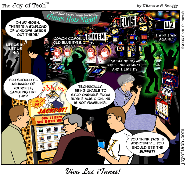 If you're using a Mac and a newer version of Explorer, here's a neat trick courtesy of MacMerc. Drag the above little image to the top tool bar of your browser, it should "stick" afterwards. Now you have a graphical link to the Joy of Tech, one that will update everytime a new comic is uploaded. (You may have to refresh the image manually if it's in your cache.) If you need to delete or move it it, just control button/click and hold, then select delete, or just Command/drag it to the trash.